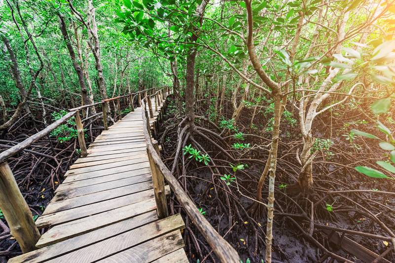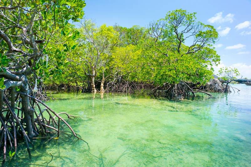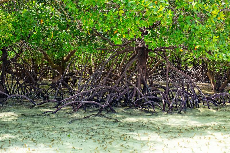 Na Zanzibaru můžete na vlastní oči vidět i mangrovový háj. Jedná se o seskupení stromů a keřů, které zapouštějí své kořeny do bahnité půdy zavlažované slanou vodou. Mangrovníky jsou výjimečné tím, že umí filtrovat sůl z mořské vody, a díky tomu přežít i na pobřeží.