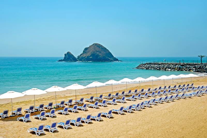 Na klidném místě emirátu Fujairah se nachází Royal M Hotel & Resort Al Aqah. Leží u písčité pláže a nabízí ideální podmínky pro pohodovou dovolenou. Zatímco děti řádí v mini klubu nebo na hřišti, rodiče si mohou užít hodinu ve wellness centru zdarma. Během dne si pochutnáte na bohatém mezinárodním bufetu nebo mořských plodech. A pro trochu romantiky zasedněte na střešní bar a za drobnou útratu si tu vychutnáte nejen skvělý drink, ale i působivý výhled.